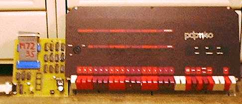 This interface board then plugs into a PC via a standard RS-232 serial connection, and John's Ersatz-11 cooperates with the firmware on this board to sample the switches and control the lights. The result is a PDP-11 replica that "looks" and "feels" just like the real thing. Cool, no?? Well, it kept me amused for a while ... |